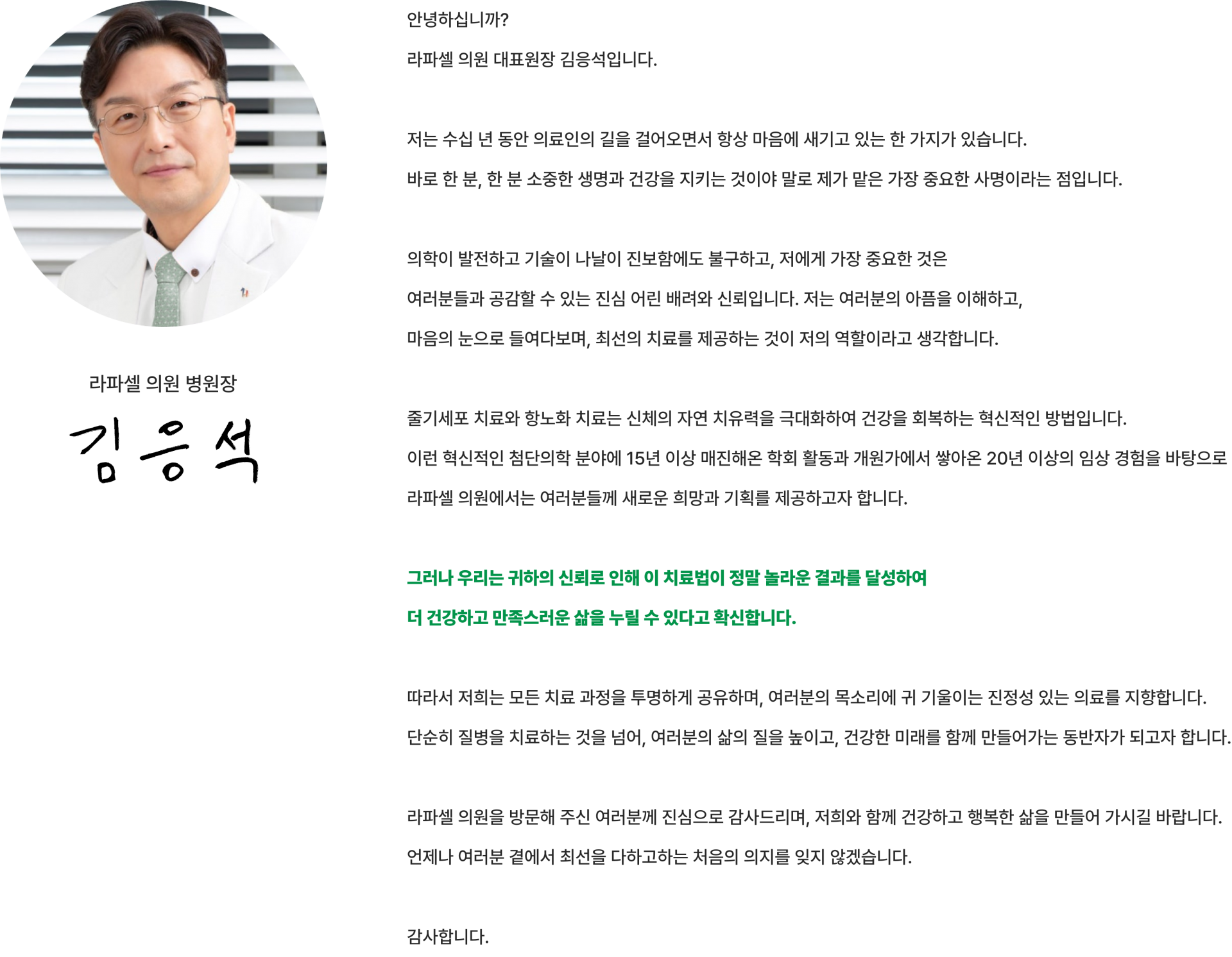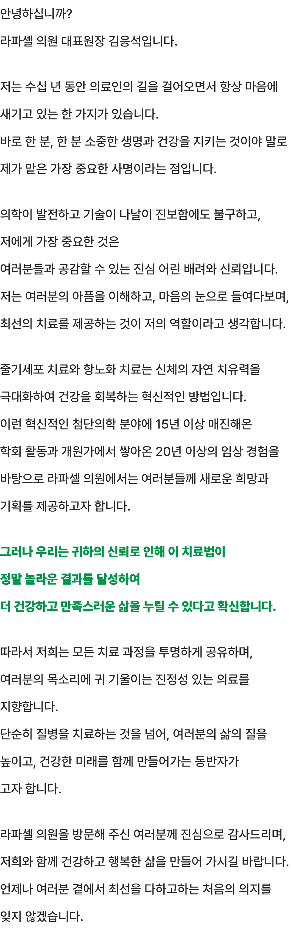라파셀의원 - 진정한 기적을 만들어내는 줄기세포 치료 전문 병원