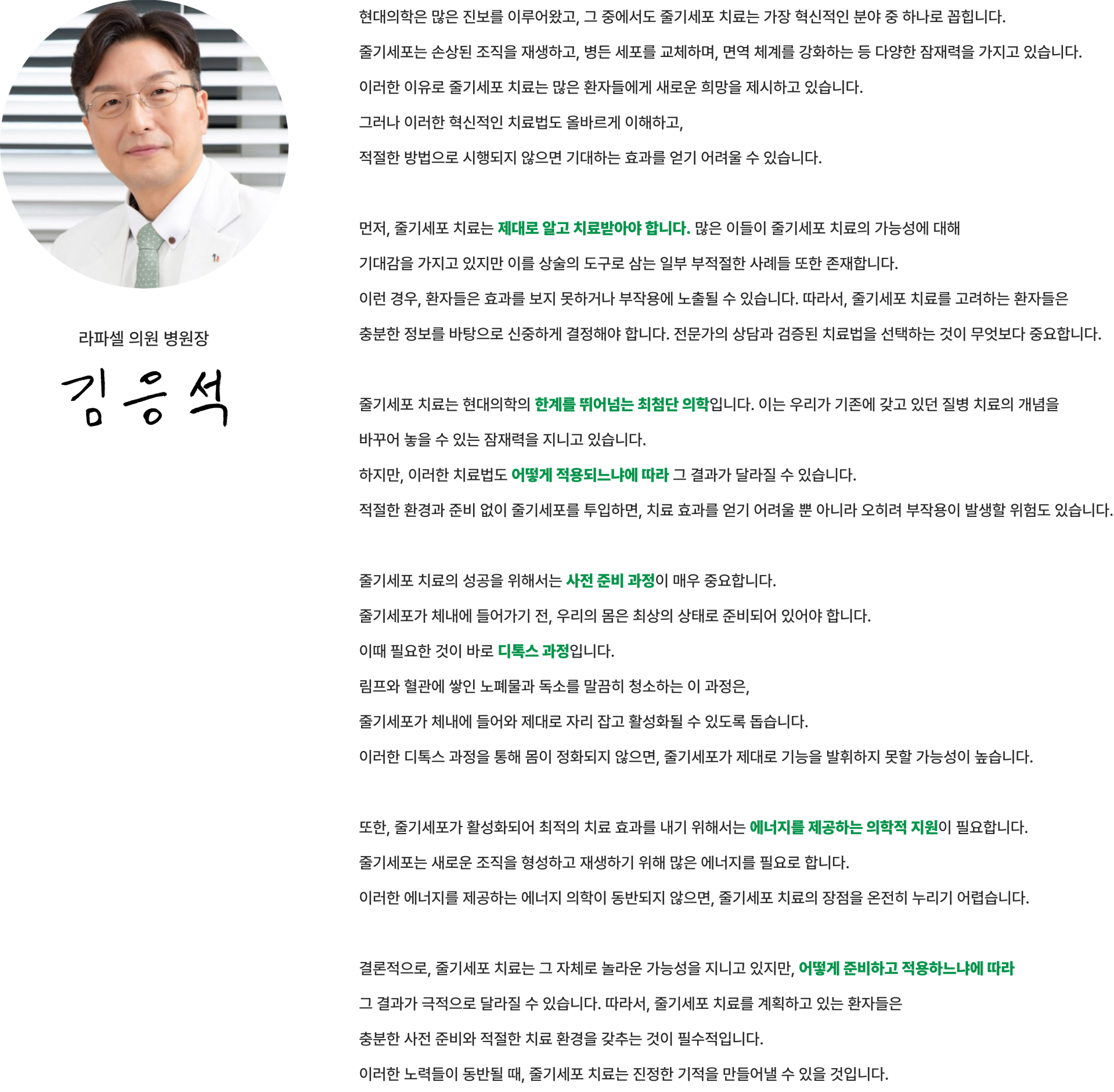 라파셀의원 - 진정한 기적을 만들어내는 줄기세포 치료 전문 병원