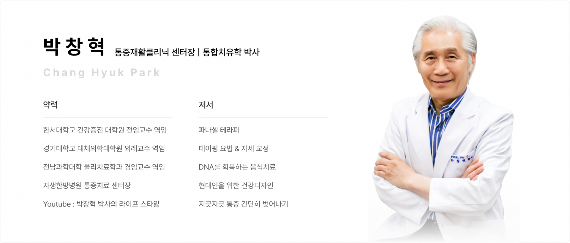 각종 교수를 역임한, 자생한방병원 통증치료 센터장 출신박창혁 센터장님이 직접 재활 치료 진행