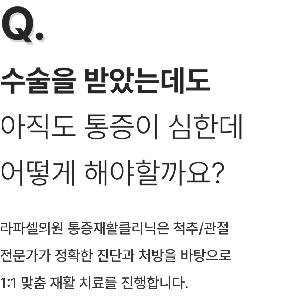 라파셀병원은 환자 한 분 한 분을 가족처럼 생각하며, 환자분들의 빠르고 안전한 일상 복귀를 위해 최선을 다하겠습니다.