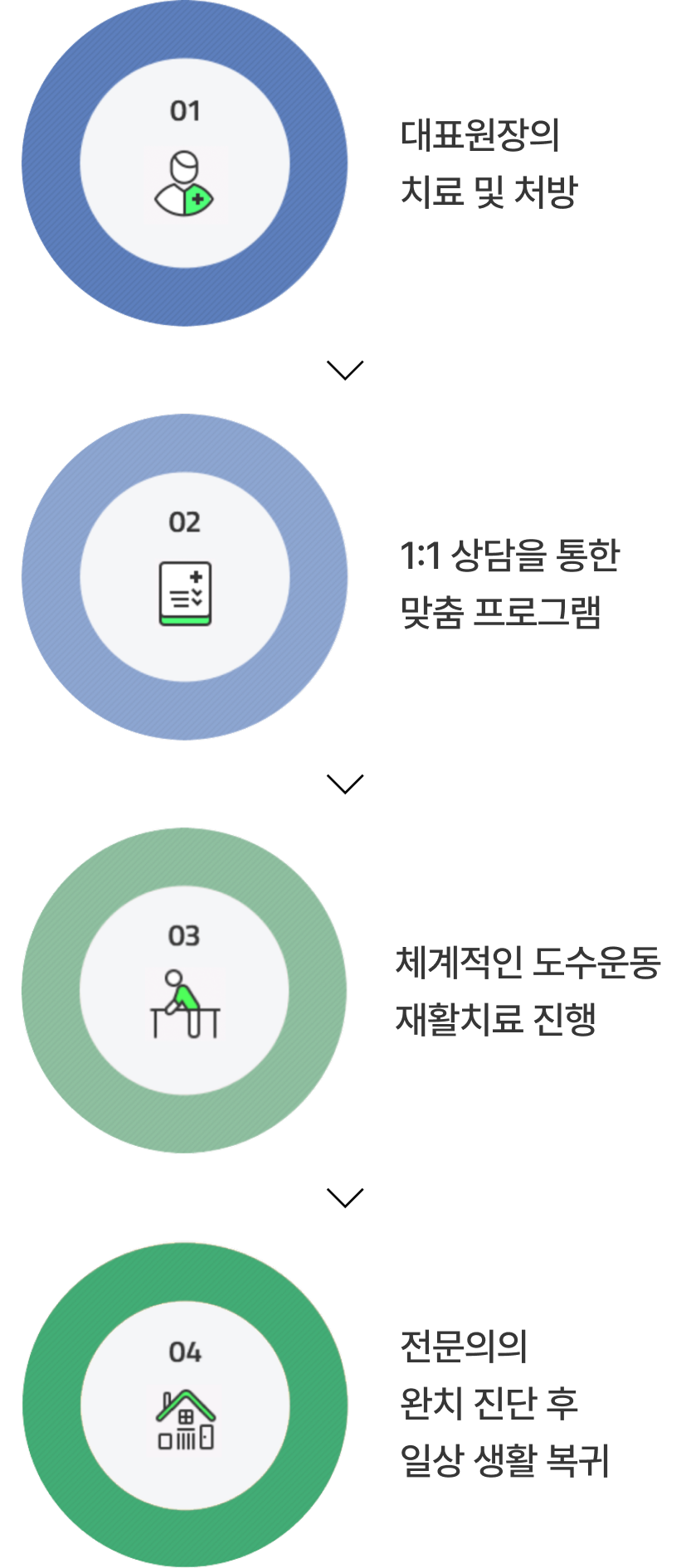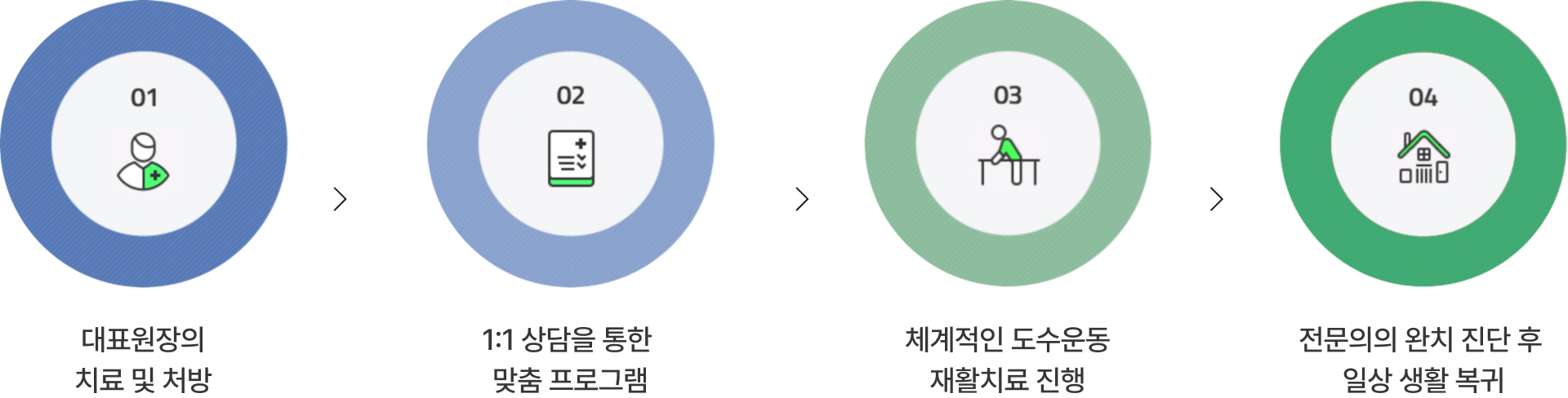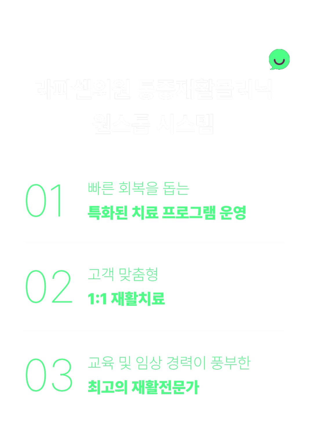 통증재활클리닉 척추/관절 전문가가 1:1 맞춤 재활 치료를 통해 환자의 상태에 맞는 단계별 치료를 진행합니다.